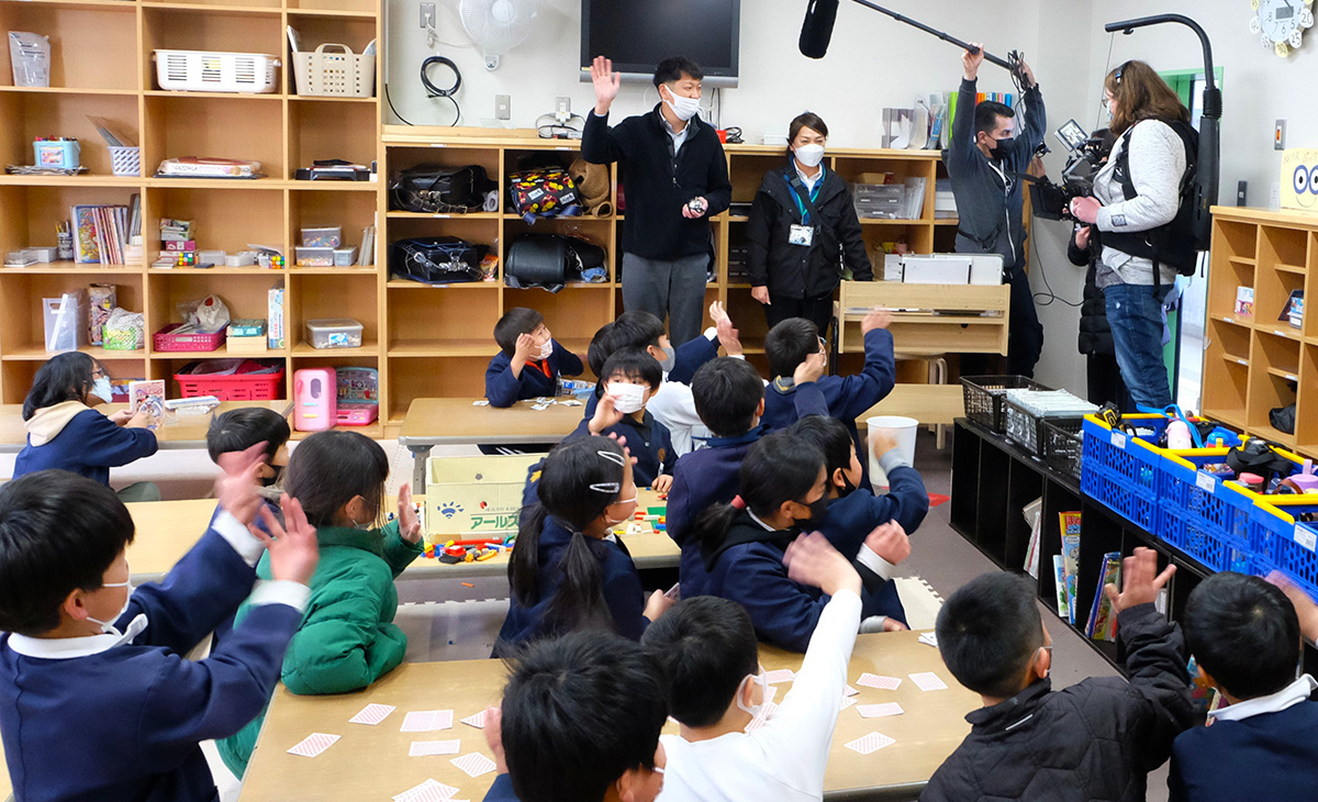 御坊学童の生徒(取材の様子)