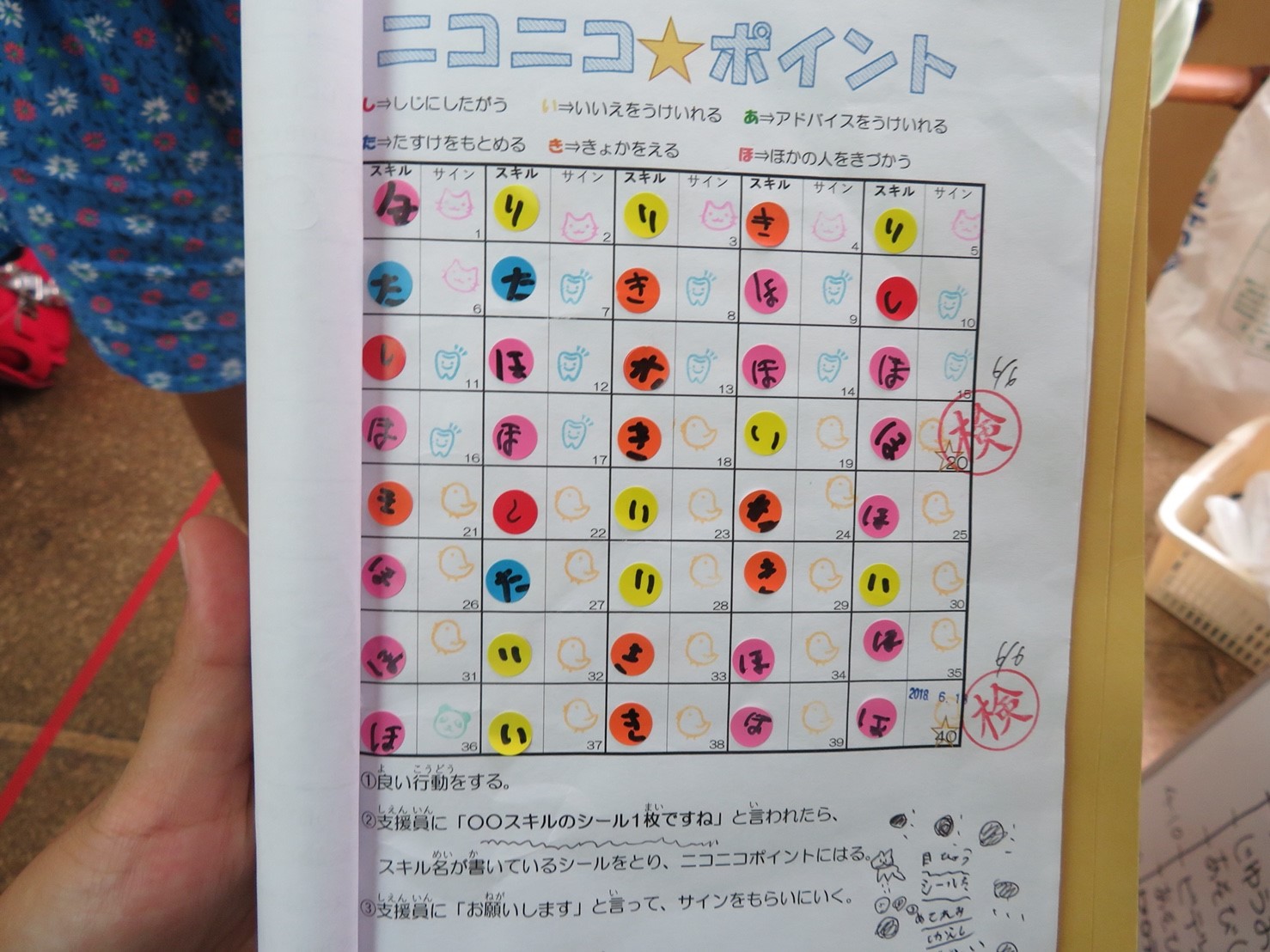 生活の中で、良い行動をする・お手伝いする・デイリーポイントをためる・スキル練習をするとポイントがたまり、景品・特権が得られるシステムです。