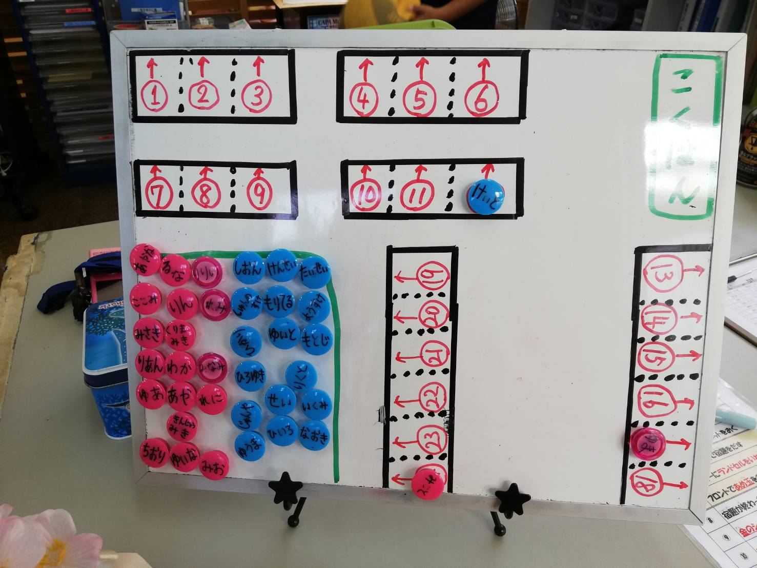 『ただいま~と登室』『登室時間をかく』『宿題をする』『お迎えがきたら、わかったと退室』 上記、4つの項目を全てクリアすると、翌日にデイリーの特権がえられます。