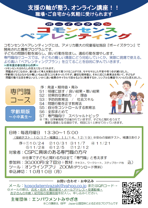 | 対象者 | CSPに興味のある専門職の方々 ※仕事で子どもと関わる方は全て「専門職」と考えます |