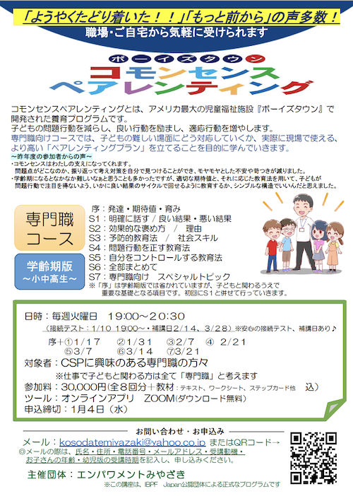| 対象者 | CSPに興味のある専門職の方々 ※仕事で子どもと関わる方は全て「専門職」と考えます |