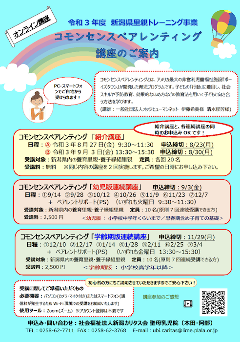 | 参加条件 | 新潟県内の養育里親・養子縁組里親 |
