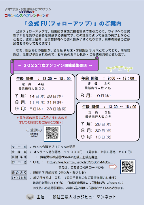 | 締切 | 開催日7日前まで(申込み・振込とも) |