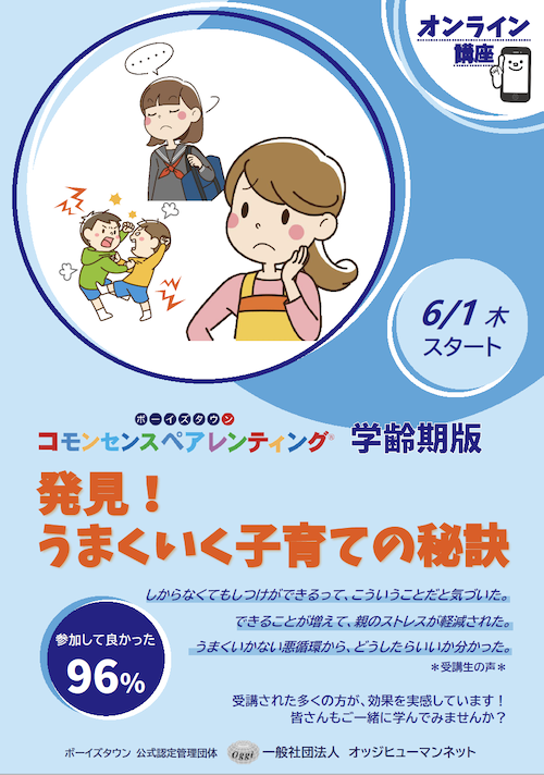 | 備考 | *ペアレントサポート(講座後のサポート):1回無料チケット付き! *親向け講座の為、専門職の方は「専門職コース」をご受講ください。 *お申し込み後に、詳細をお届け致します。 尚、受講料お振込み順に、受講確定となります。 |